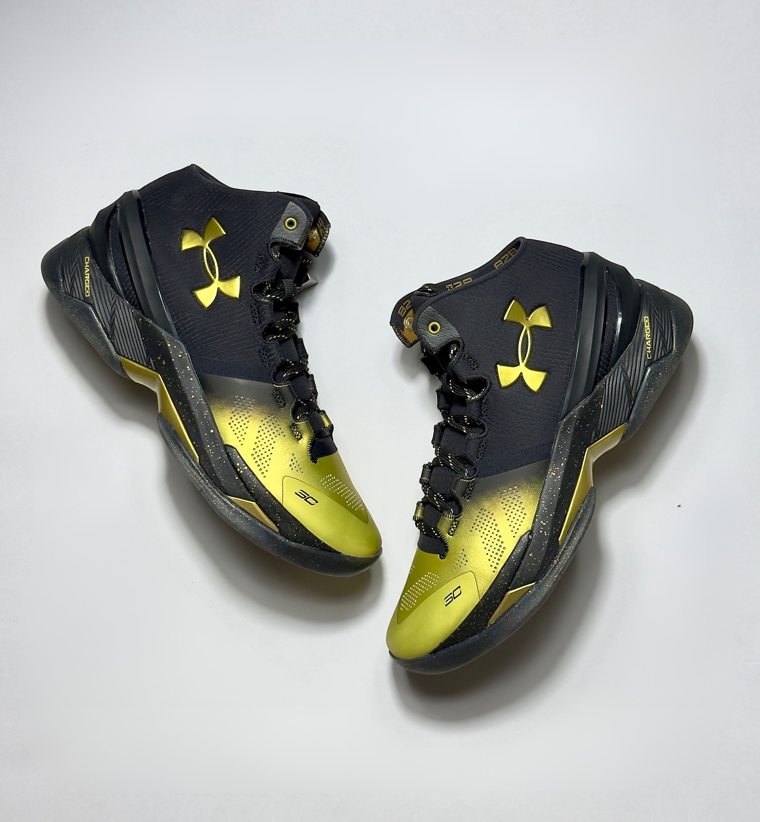 Building on the success of Stephen Curry’s debut signature model, the Under Armour Curry 2 refined the formula with improved fit, support, and stability. Co-designed by Dave Dombrow and Rashad Williams, the model introduced Under Armour’s SpeedForm technology—a construction method originally developed for running footwear—into basketball for the first time. The result was a more anatomical, compression-like fit designed to move seamlessly with the foot.
