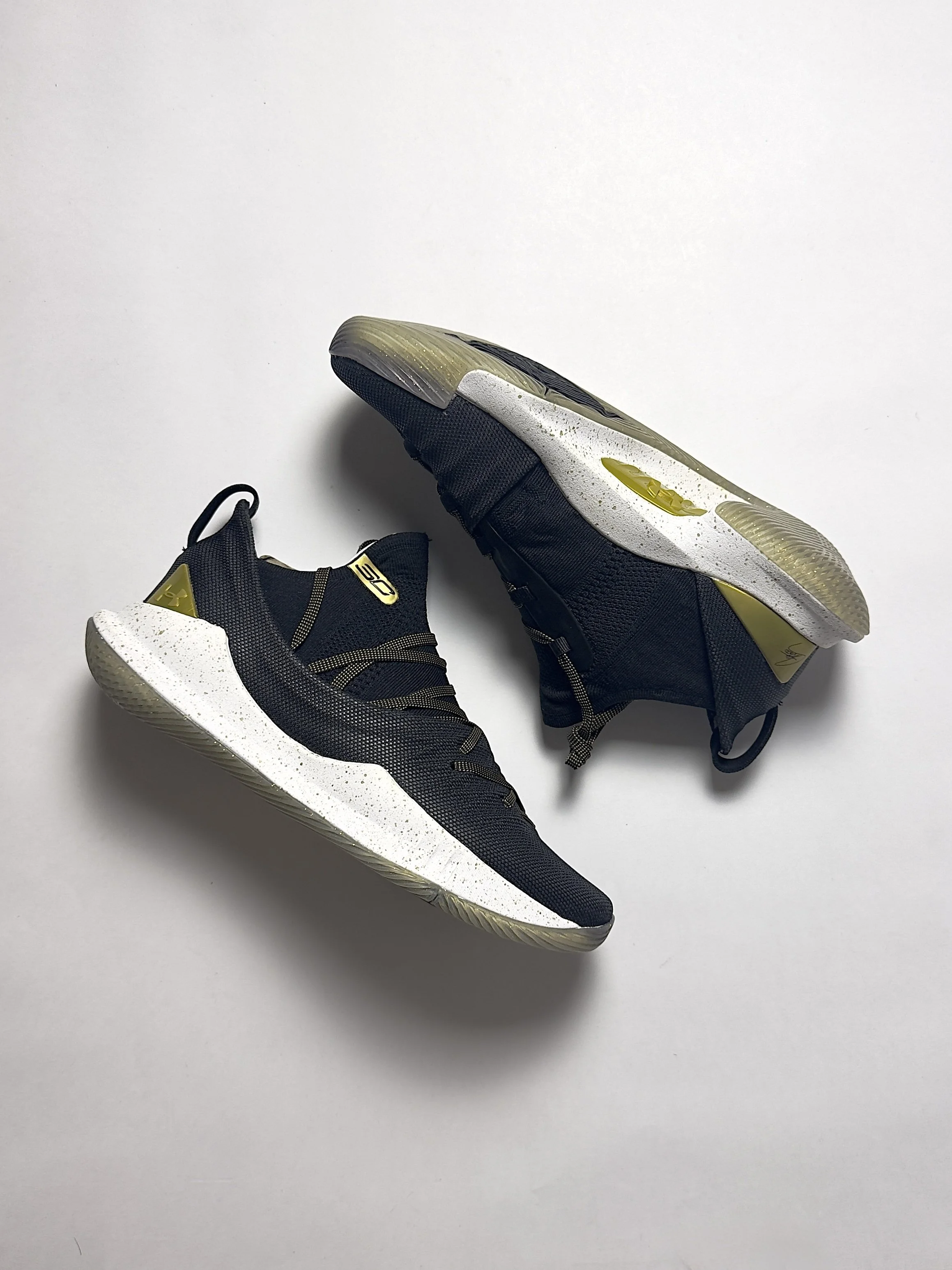 The Under Armour Curry 5 marked a pivotal evolution in Stephen Curry’s signature line, becoming the first low-top model in the series. Designed by Dave Dombrow, the shoe was built around the concept of agility and precision—allowing Curry to stay low to the ground while maintaining complete control in all phases of motion.